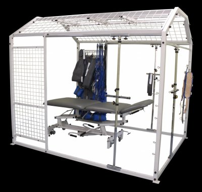 Кабіна для підвісної терапії (часто звана WSS або «клітка») є багатофункціональним пристроєм, що складається з жорсткої рами з сітчастими панелями. Така конструкція дозволяє закріплювати блоки, троси та підвіси в будь-якій точці, забезпечуючи безмежну кількість комбінацій для вправ. У залах ЛФК кабіни стають центральним елементом, навколо якого будується вся робота кінезотерапевта.