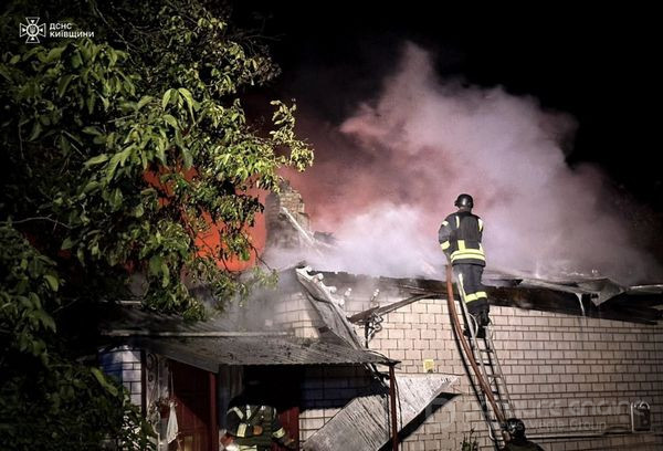 На Київщині вночі внаслідок падіння уламків безпілотника загорівся житловий будинок. Будівля частково зруйнована. Рятувальники ліквідували пожежу.
