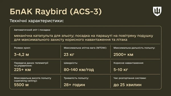 Прийнятий на озброєння ЗСУ 2018 року Raybird-3 відтоді неодноразово поліпшувався і зараз має великий бойовий досвід: понад 350 000 годин бойових вильотів і десятки місій щодня. Це літак-розвідник, який може перебувати в небі до 28 годин і долати відстань до 2500 км. Завдяки своїм характеристикам та компактній формі, він має змогу оминати ворожі системи ППО та зони активної роботи РЕБ, щоб проводити якісну візуальну розвідку з висоти до 5.5 км та виконувати інші завдання.РЕКЛАМА