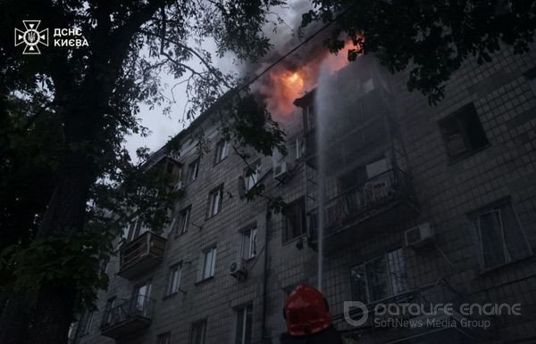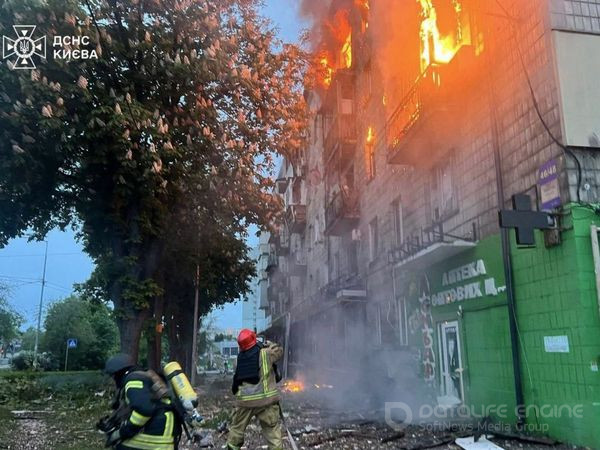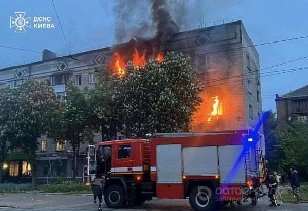 У Святошинському районі уламки дрона влучили у 9-поверховий житловий будинок. Сталося загоряння квартир на 6, 7, 8 та 9 поверхах. Пожежу ліквідовано на площі 100 кв. м.РЕКЛАМА