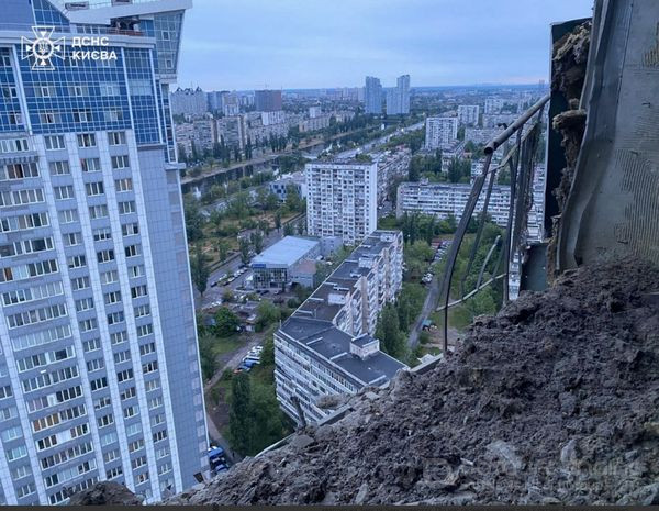У Дніпровському районі безпілотник впав на багатоповерховий житловий будинок. Часткове руйнування перекриття на 29-му та 30-му поверхах. Горіння та потерпілих немає.