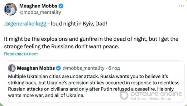«Гучна ніч у Києві, тату», — написала Моббс, згадавши акаунт Келлога.