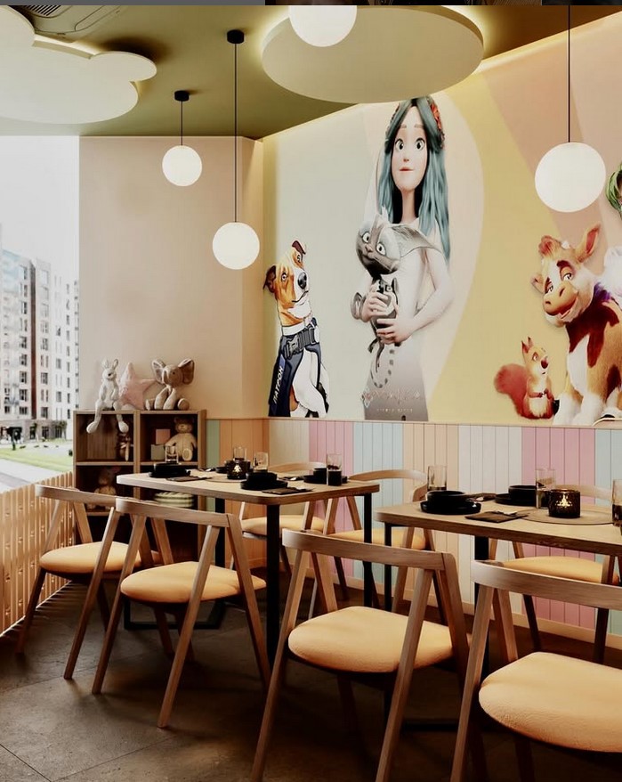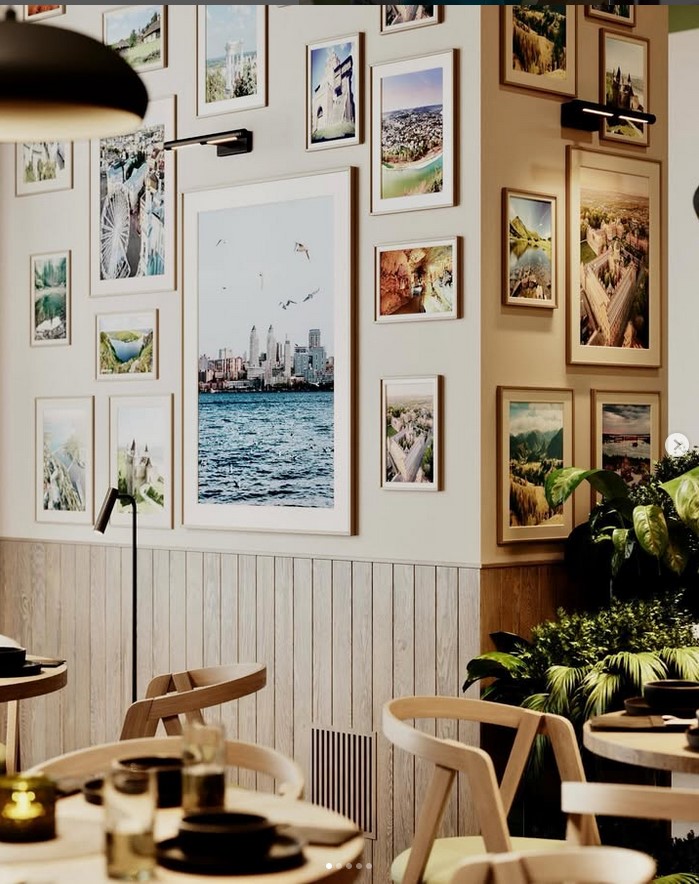 Тут слід сказати, що в ресторані декілька просторів. В одному з них ми розмістили велику кількість фотографій мальовничих куточків України, які варто відвідати, побачити наживо. На превеликий жаль, в деяких з цих місць побувати поки неможливо, бо вони тимчасово окуповані. В іншому просторі стіни розписані малюнками, які ілюструють історію нашої держави. А дитячій зоні — на стінах кольорові зображення героїв сучасних популярних українських мультфільмів. На 118 квадратних метрах, які займає ресторан, ми створили затишок і комфорт.