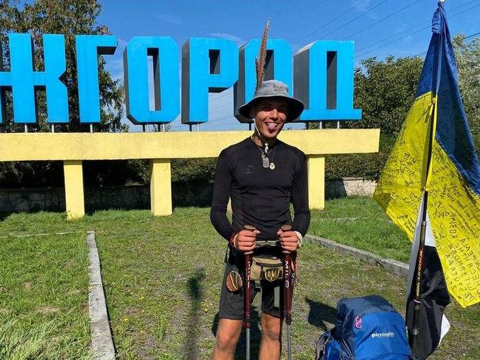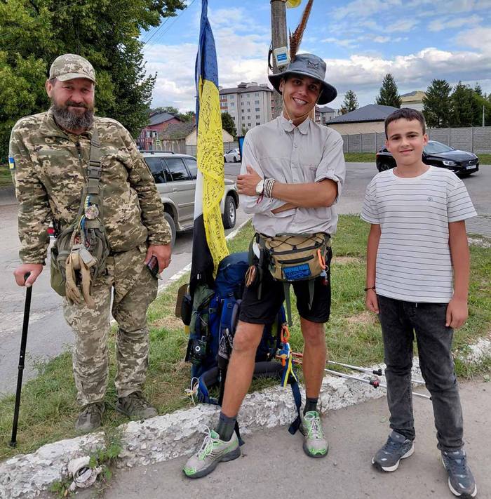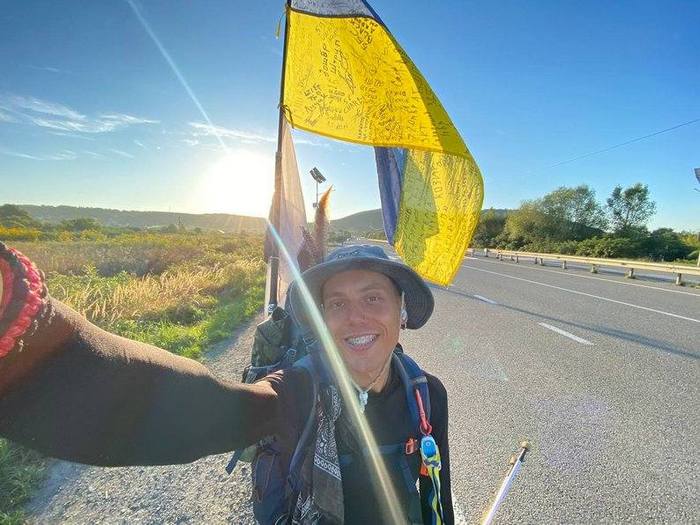 - Рюкзак із гамаком, сублімованою їжею, водою, аптечкою, гігієною, речами. Він важив 28 кілограмів. З собою я ніс прапори. Це державний, на якому ставили свої підписи всі військові, які зустрічалися на моєму шляху. Був Прапор Надії, котрий присвячений всім полоненим у росії. Стартував 21 червня о 7 ранку. В середньому долав 25 кілометрів за добу, але було, що встановив власний рекорд — аж 48 кілометрів. Рухався Дніпропетровщиною, Кіровоградщиною, Вінниччиною, Хмельниччиною, Тернопільщиною, Львівщиною, Прикарпаттям та Закарпаттям. На Закарпаття зайшов через Ясіня, піднявся на Драгобрат, пройшов через хребет і спустився в селі Красна. Кожна область унікальна, зі своїми пейзажами. У цій мандрівці я вчергове переконався, що Україна прекрасна, і вона варта, аби за неї боротися з ворогом, вигризаючи кожен метр землі.
