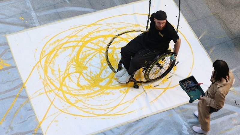 Днями, в Книгу рекордів України було внесено ім'я 29-річного ветерана з Київщини Валентина Олексієнка. Він став першим автором, що створює картини за допомогою крісла колісного!