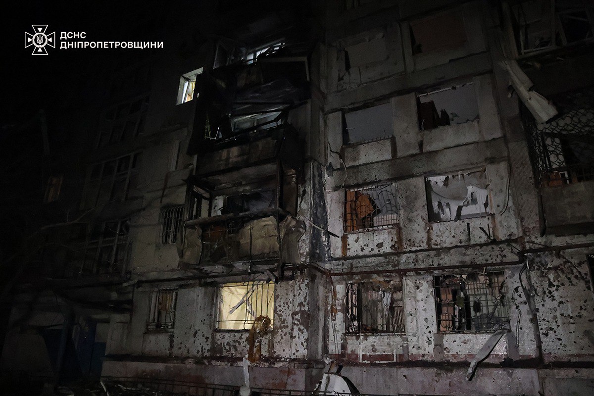Як повідомили в ДСНС України, у Дніпрі російський ударний дрон влучив поряд із багатоповерхівкою. Постраждали 14 людей, серед них 1 дитина — дівчинка, 2014 року народження. Зайнялися балкони трьох квартир, а також автомобілі припарковані у дворі.