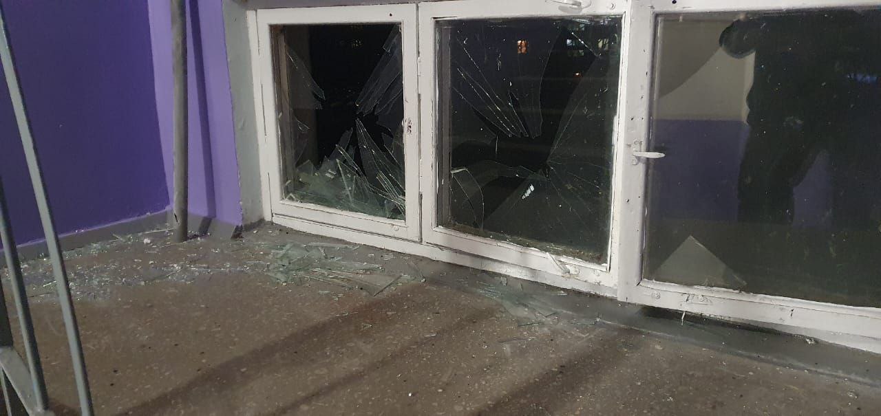 За наслідками влучання в житлову багатоповерхівку увечері в Сумах попередньо вибито понад 100 вікон та пошкоджено 10 автомобілів.