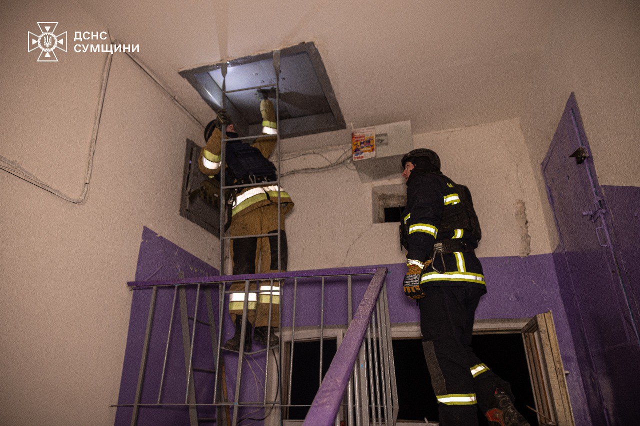 «Зафіксовано влучання в багатоповерхівку в Зарічному районі. Попередньо постраждалих немає. Пошкоджено дахове покриття будівлі, вікна у квартирах на 2-ох верхніх поверхах, вибито вікна сходових клітин», — йдеться у повідомленні.